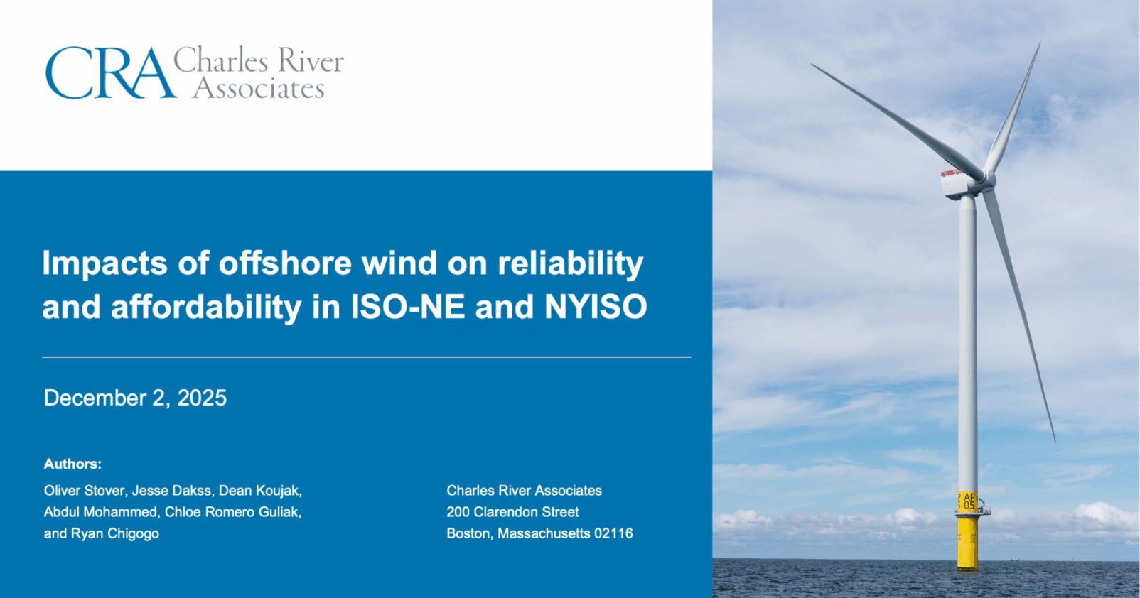 A new report from Charles River Associates, released today through Turn Forward’s Energy Research Exchange, finds that the Northeast power grid is under growing stress due to increased demand from electrification and limits on natural gas availability during peak load periods, especially in wintertime. Locally generated resources like offshore wind that deliver power at scale during high-stress conditions can enhance electric reliability and help contain costs in New England and New York.